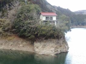 空き家バンク【賃貸】3.8万円 岡山県久米郡美咲町江与味 湖と鉄橋を望み・静かな湖畔に佇む 山林・駐車場3台付き3LDK2階建 縁側・各階トイレ